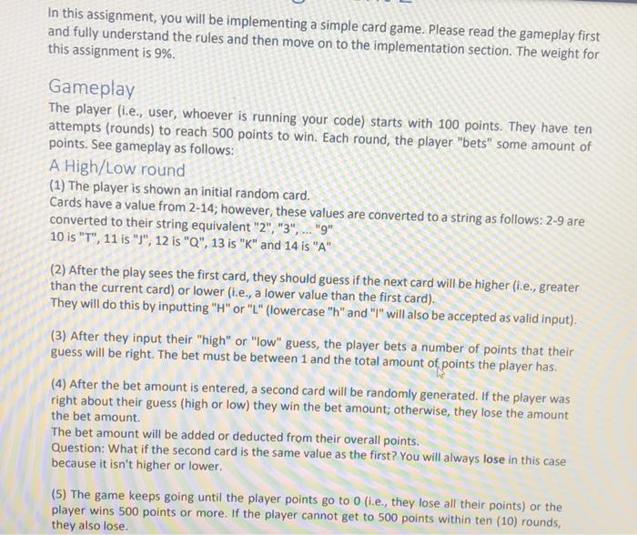 High Low Card Game Python. Playing the High Low Guessing Game. How to make a simple beginners higher or lower card game in PythonFull code available here - httpslearnlearnukpythonpython-higher-lower-card-game-tuto.